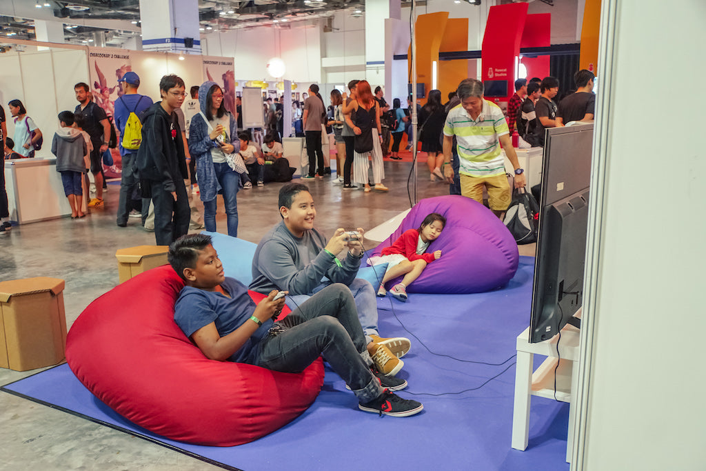 Bean bags are PERFECT for gaming. PERFECT. That’s why when the Singapore Toys, Games and Comics Convention rolled round, not getting doob? NOT AN OPTION. We decked the halls of Marina Bay Sands with the comfiest doobs, while people played with various games on Nintendo Switches, Sony Playstations, Xboxes and the like!