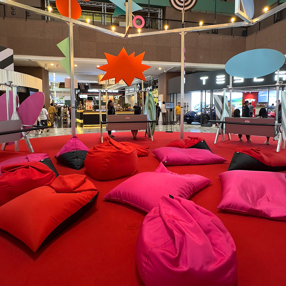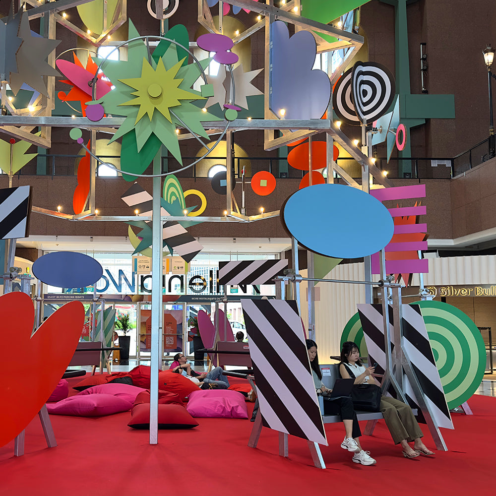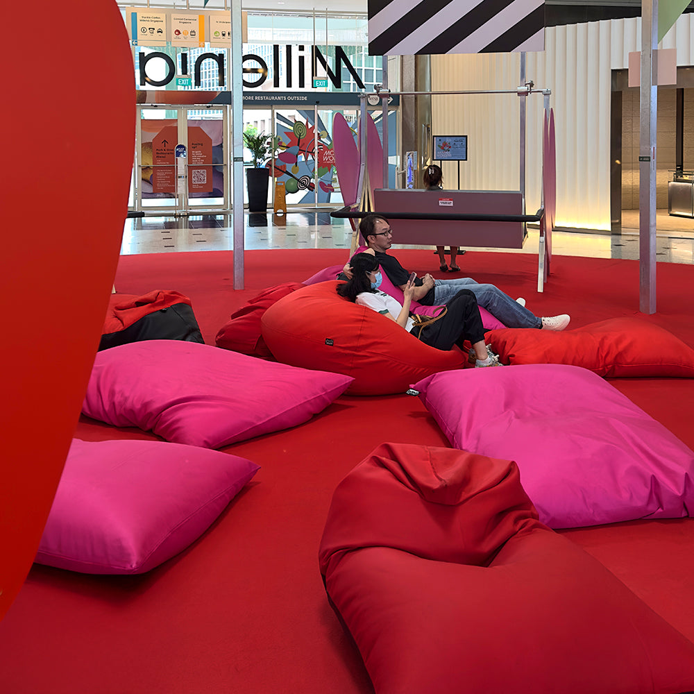 Monument to Movement is Wade and Leta’s first artwork to debut in Southeast Asia. The ever-moving sculpture stands 14 meters high, with spaces for visitors to rest and reconnect. The integration of cozy doob bean bags into the exhibit added a unique dimension to the overall experience. Visitors were able to immerse themselves fully in the whimsical world of Wade and Leta, relaxing and enjoying the sights and sounds from a comfortable vantage point. The bean bags proved to be a popular spot for both children and adults, offering a playful and inviting space to unwind and appreciate the artistry.
