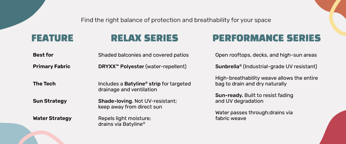 Manage the Sun: To prevent fading and fabric degradation—especially for the Relax series—avoid leaving your bean bags in direct, baking sunlight when not in use.