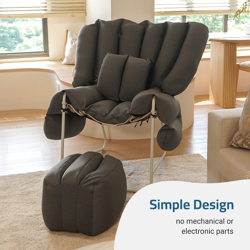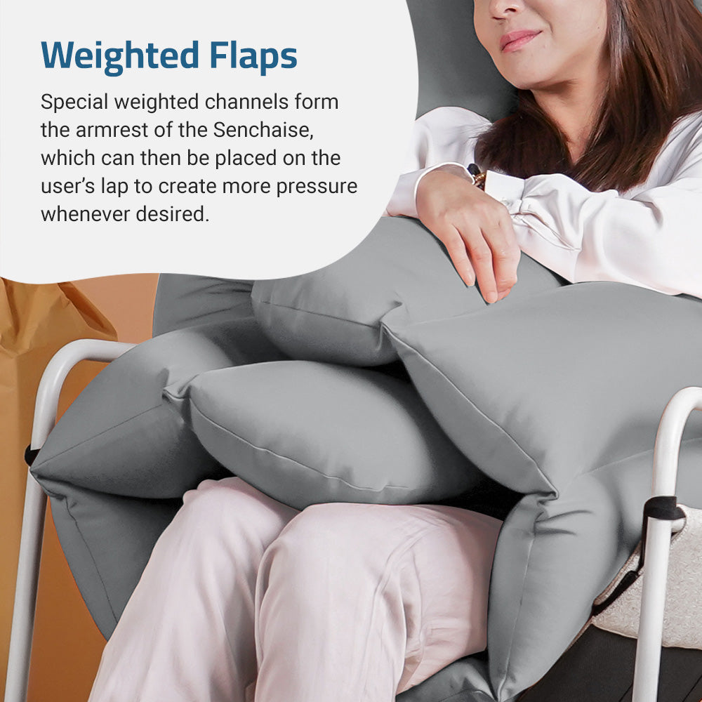 The huggu Set is a collection of three products designed to promote calm and reduce anxiety. The Senchaise Hugging Chair, the Mochi Cushion, and the Doraya Footstool all apply pressure and sensory therapy principles to provide gentle stimulation that can help to soothe the body and mind.