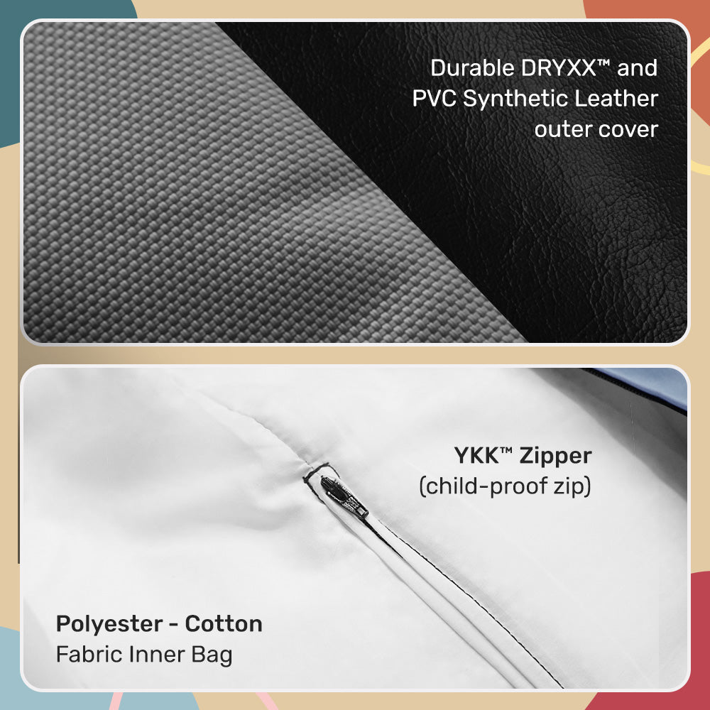 Half DRYXX™. Half synthetic leather. All dumpling. Sit on either side, or down the middle, or even upright.